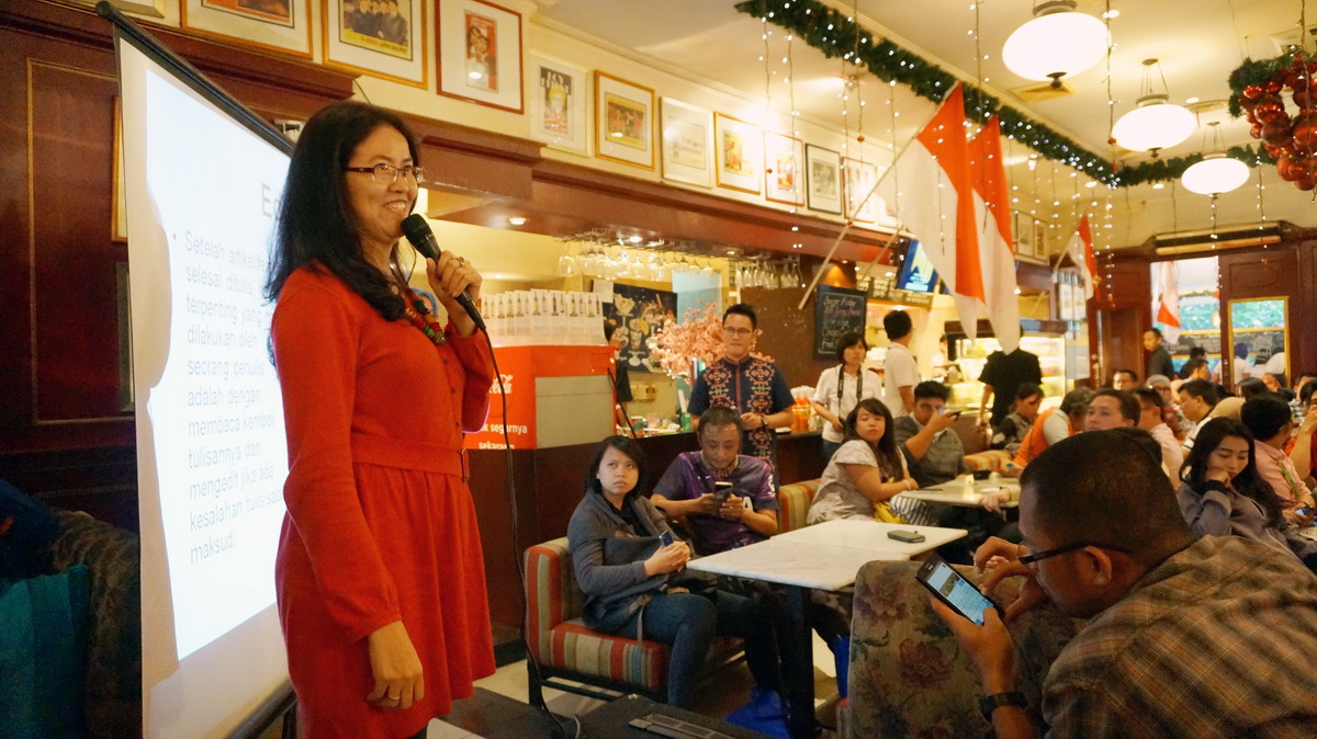 Dalam sharing tersebut Elok Dyah mencoba untuk berbagi pengalaman yang dimilikinya dalam menulis. Dalam menulis hendaknya kita mencari dahulu data data yang ada sehingga pada saat sampai tujuan kita bisa melengkapi data-data yang sebelumnya yang telah dikumpulkan, dilengkapi dengan beberapa foto dokumentasi serta hasil interview dengan penduduk lokal. Elok menambahkan, ketika interview sebaiknya kita menjauhkan dari alat rekam ketika kita bertanya, khawatirnya mereka takut ketika kita interview dengan menggunakan alat tersebut.