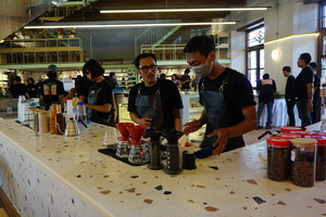 Kali ini, kedai ketiga di Semarang ini hadir dengan konsep tema interior yang modern, light dan colorful, membawa suasana yang lebih segar. Dengan bar di tengah kedai menjadikan kopi sebagai pusat atensi dari keseluruhan ruang sehingga pengunjung dapat menikmati aktivitas barista.