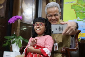 Sebelumnya hanya mendengar suara melalui video-video di media sosial, Carissa Kusumaning Asih (8) akhirnya bisa bertemu Gubernur Jawa Tengah Ganjar…