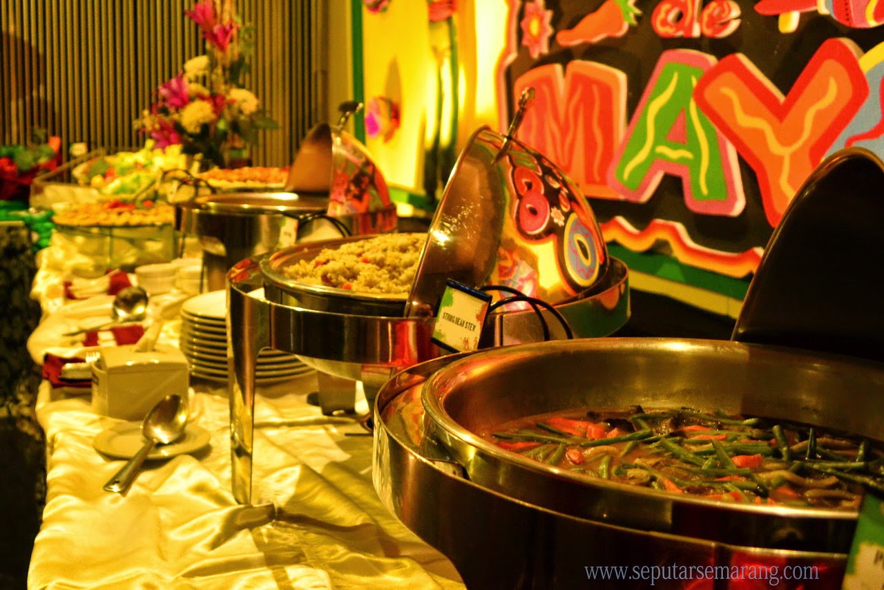 Hidangan manca negara tersedia untuk mewarnai bulan Mei yang penuh Hari Libur Nasional ini. CINCO DE MAYO All-You-Can-Eat Buffet at E-Resto Entertainment Plaza. Special Buffet ini disajikan antara 5-10 Mei 2014 antara pukul 18.30 hingga 22.00 saja. Memeriahkan Cinco de Mayo yang berarti peringatan 5 Mei, penikmat kuliner cukup merogoh Rp 55.000++ saja per pax untuk menyantap sepuasnya berbagai hidangan lezat khas Mexico racikan Chef E-Resto. Dengan menu yang berbeda setiap harinya, berbagai pilihan tersedia langsung dari Salad Bowl, Cold Cut, Salad Bar, Soup, Main Course, hingga Dessert.