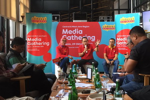 [Direktur Utama dan CEO Indosat Ooredoo, Chris Kanter, sedang memberikan paparan terkait transformasi bisnis perusahaan yang saat ini dipimpinnya, dalam Media Gathering di Semarang, Senin 29/10/2018.]